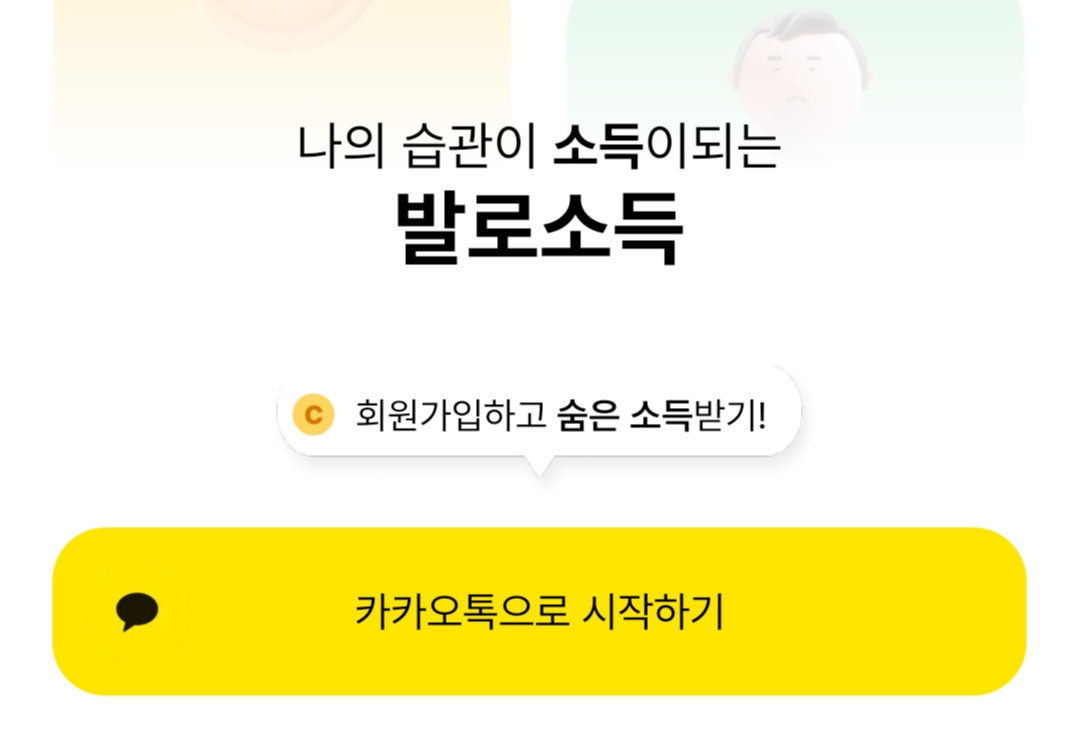 이것저것 가입하는 게 귀찮은 분들을 위해서 발로소득 가입은 카카오톡 계정만 있으면 쉽게 가입할 수 있습니다.