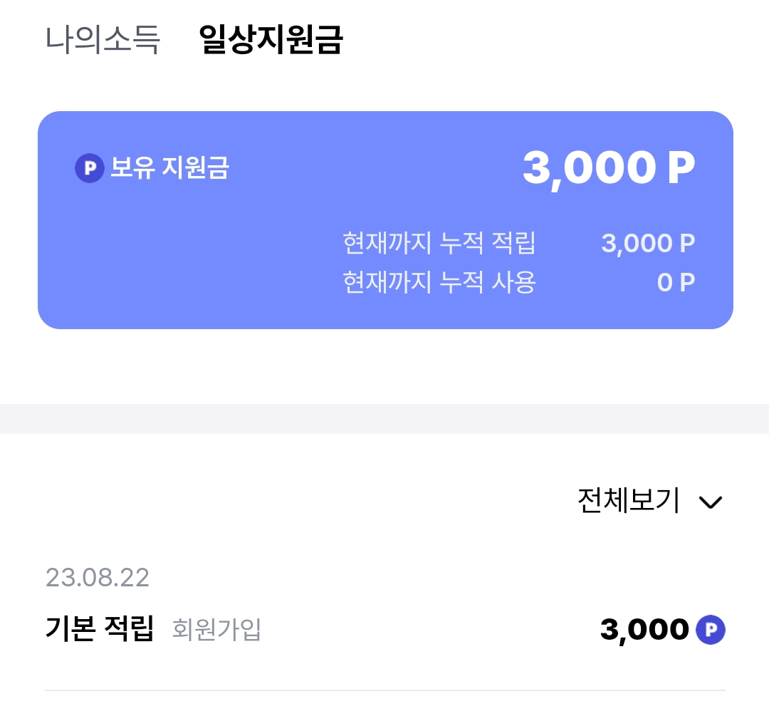 가입만 했는데 기본으로 적립된 포인트입니다. 이 글을 읽고 계시는 분도 위의 다운로드 버튼을 따라 다운했다면 3,000포인트가 들어와 있는 것을 확인할 수 있습니다.