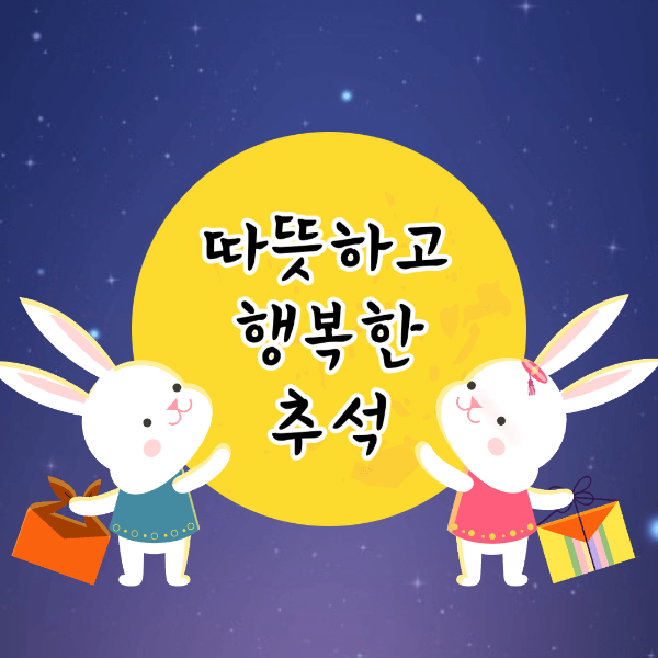 추석 하면 떠오르는 달 토끼와 밝은 보름달으로 만든 귀여운 이미지 입니다. 너무 딱딱한 이미지보다는 귀여운 느낌 좋아하시는 분들에게는 이런 추석 인사가 잘 어울리네요.