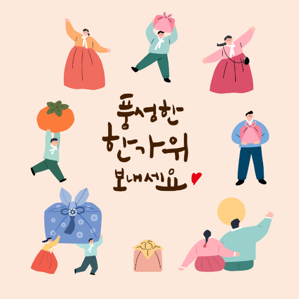 이번에는 조금 귀여운 그림과 한복을 입은 모습으로 추석의 전통 의미를 살려보았습니다.