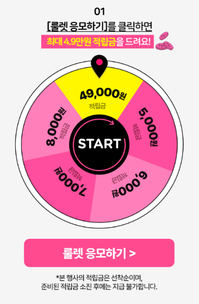 너무 기쁘고 다른 분들한테도 알려드리고 싶어서 제 당첨금 인증합니다. 혹시 49,000원이 안 되더라도 최소 금액이 5,000원이라 선착순 기회 종료되기 전에 도전해볼만 합니다.