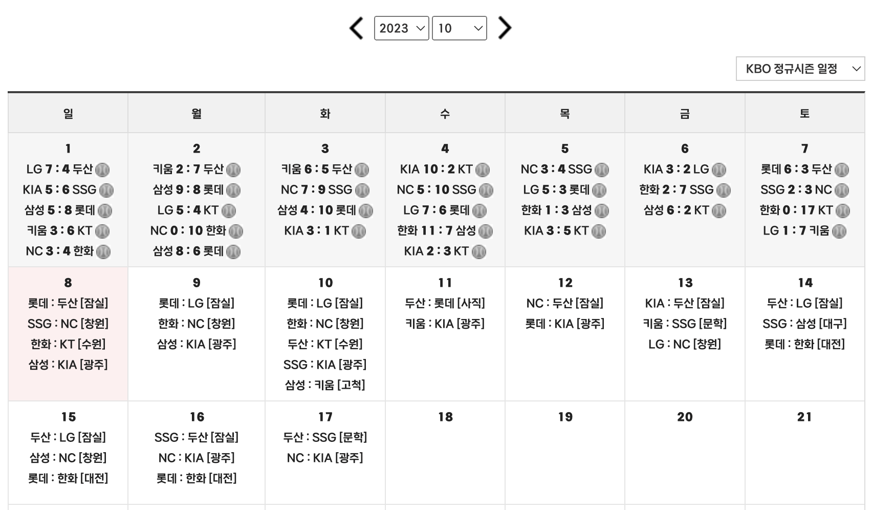 | 2023 KBO리그 포스트시즌 일정 최종 확정. (0) | 2023.10.13 |
